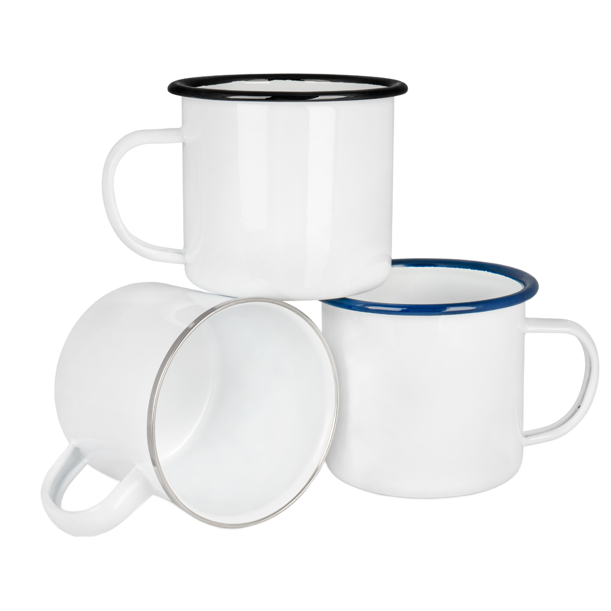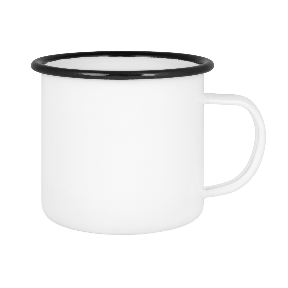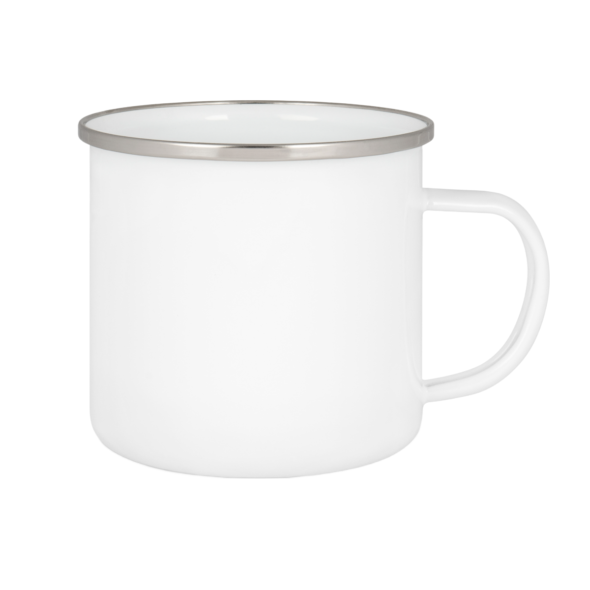 This white enamel mug with 18oz capacity impresses with its high-quality ORCA coating, which guarantees perfect results for sublimation transfers.
