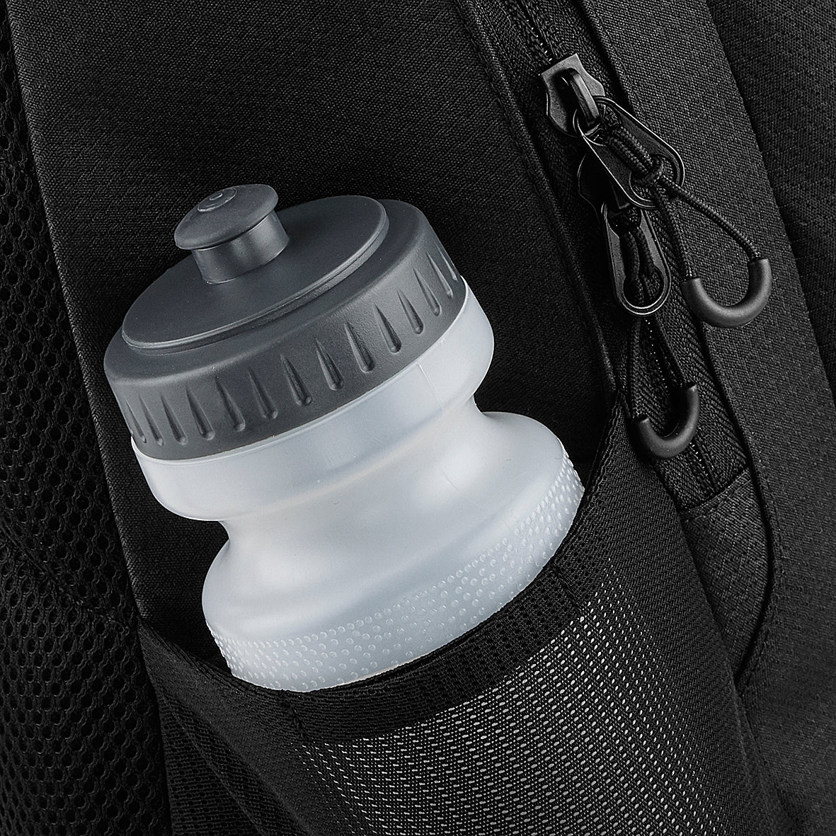 Two mesh compartments / water bottle holder