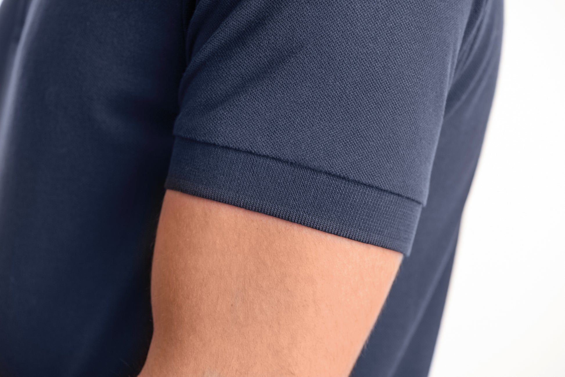 The innovative collar design, along with the neckband and side vents reinforced with twill tape, ensure long-lasting quality. A 1x1 rib-knit collar and cuffs, and a 3-button placket with tone-on-tone HRM detail complete the design.