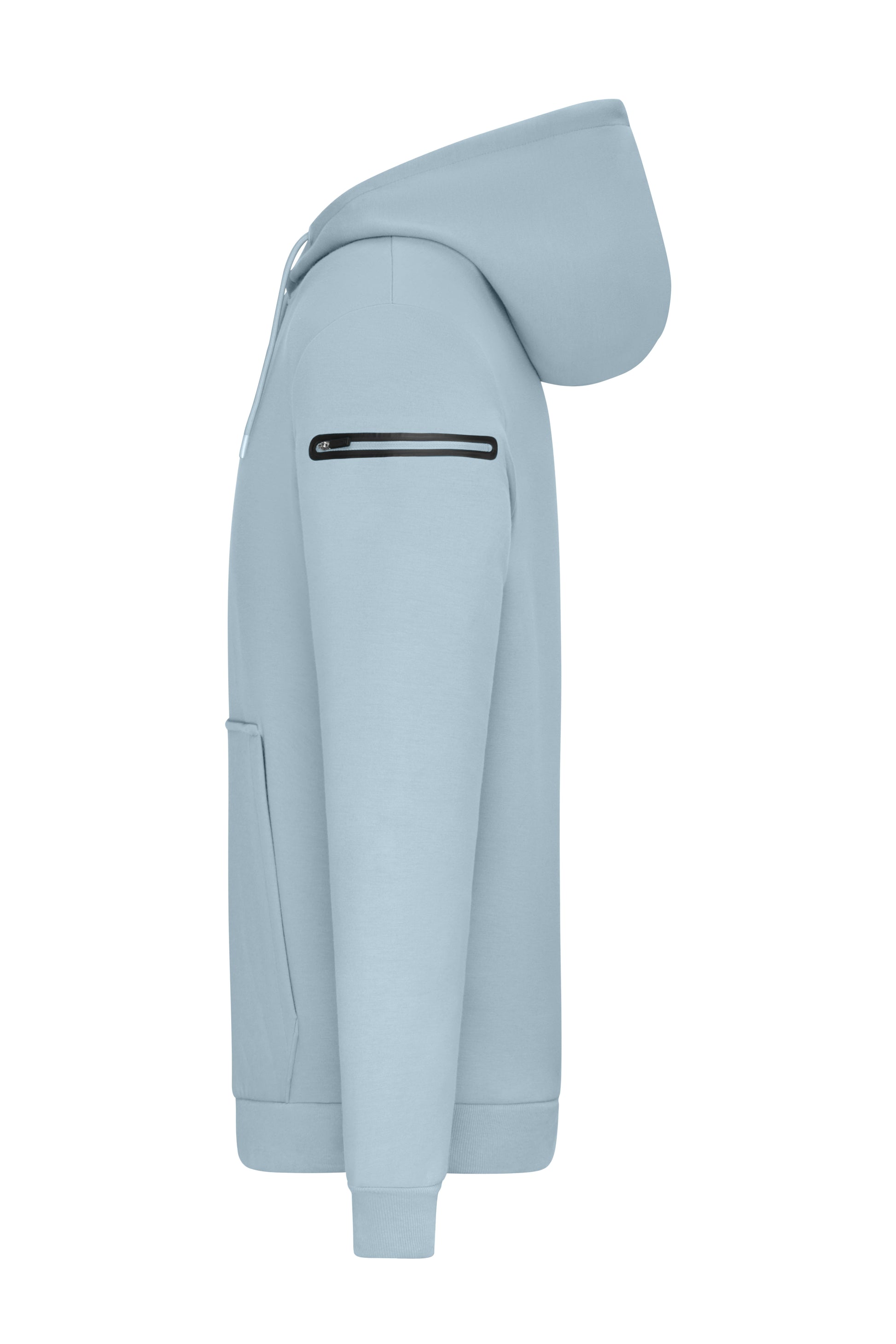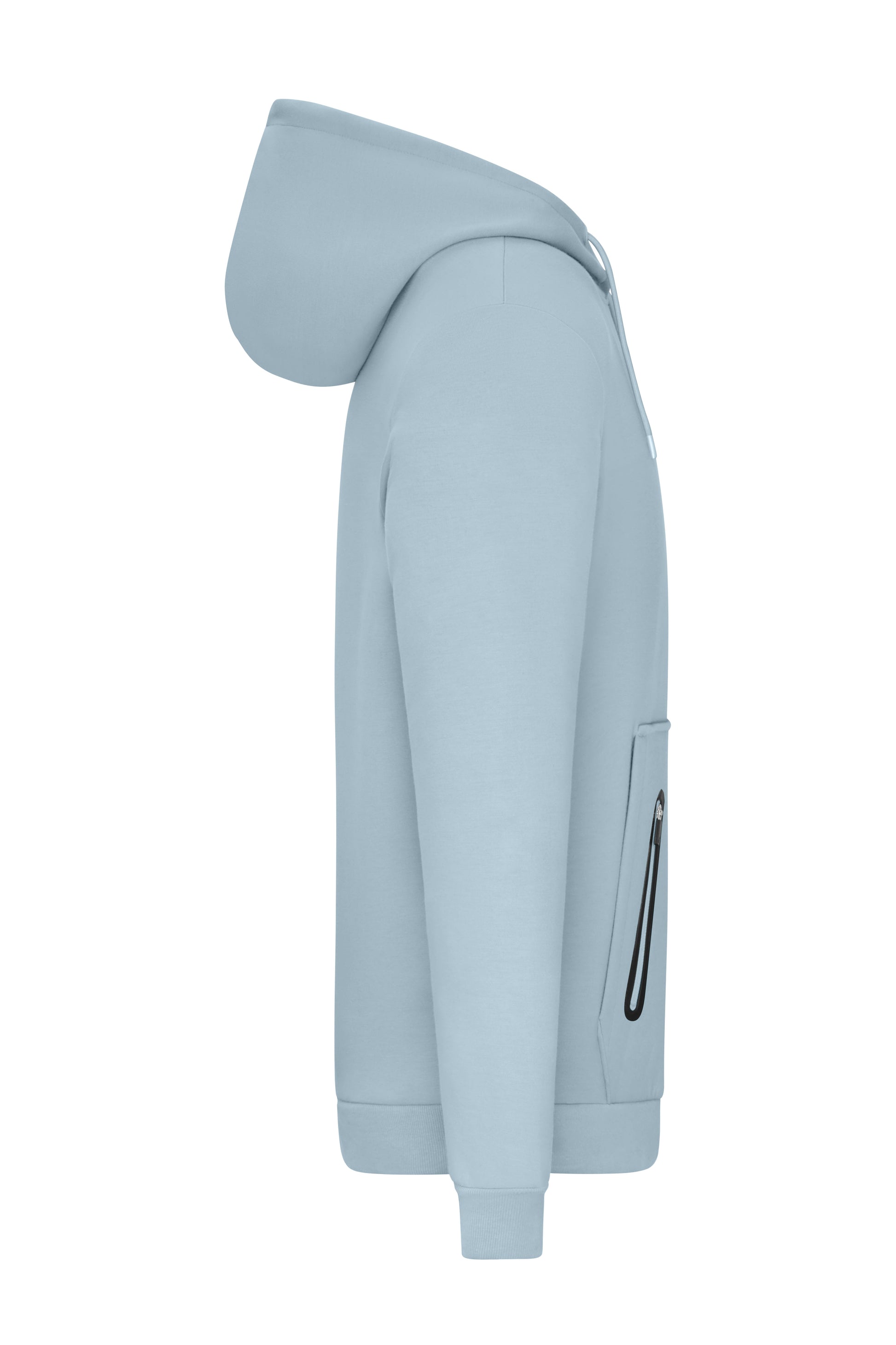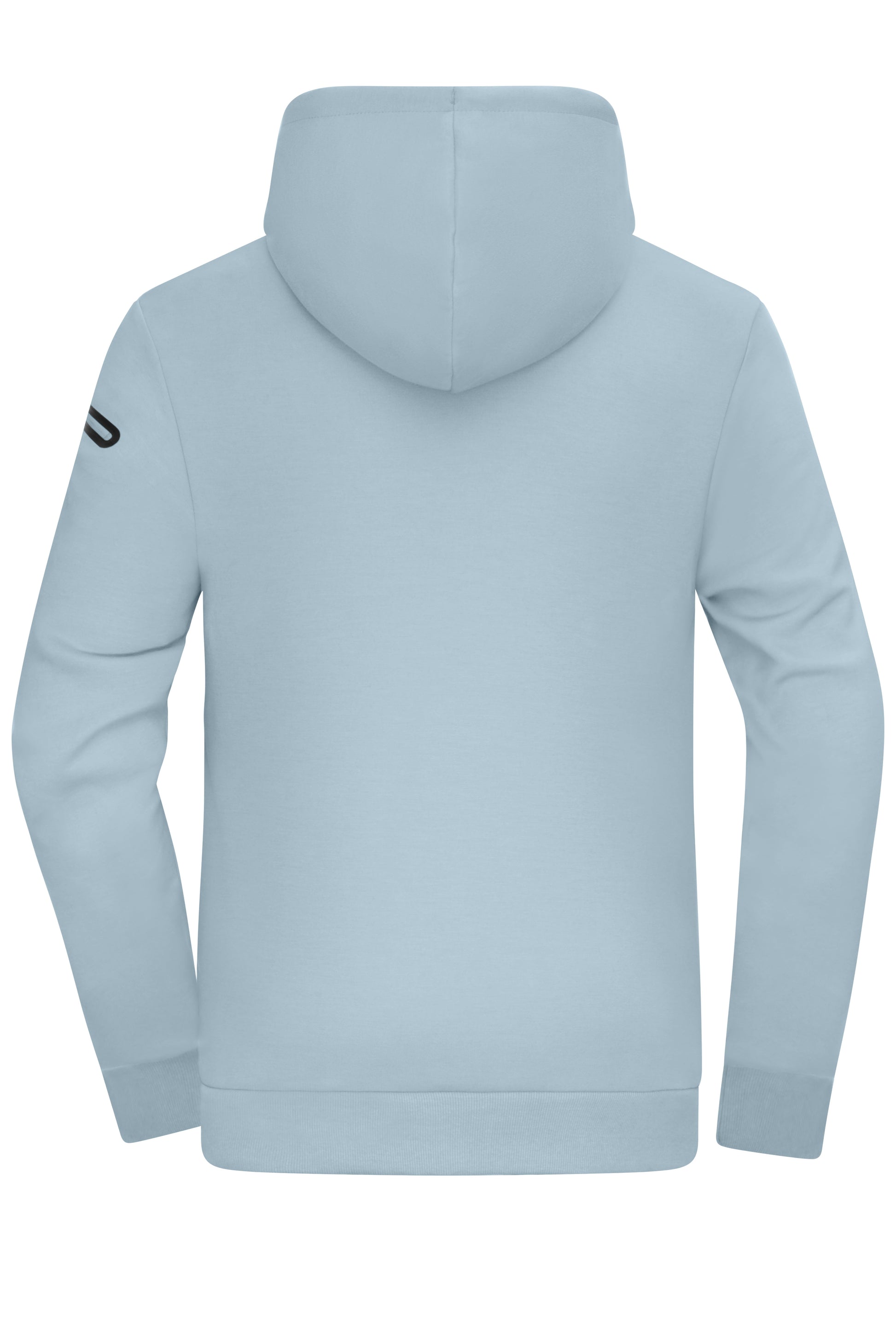 This men's hoodie made of high-quality interlock fabric combines organic cotton, recycled polyester, and elastane for a comfortable fit and optimal freedom of movement.