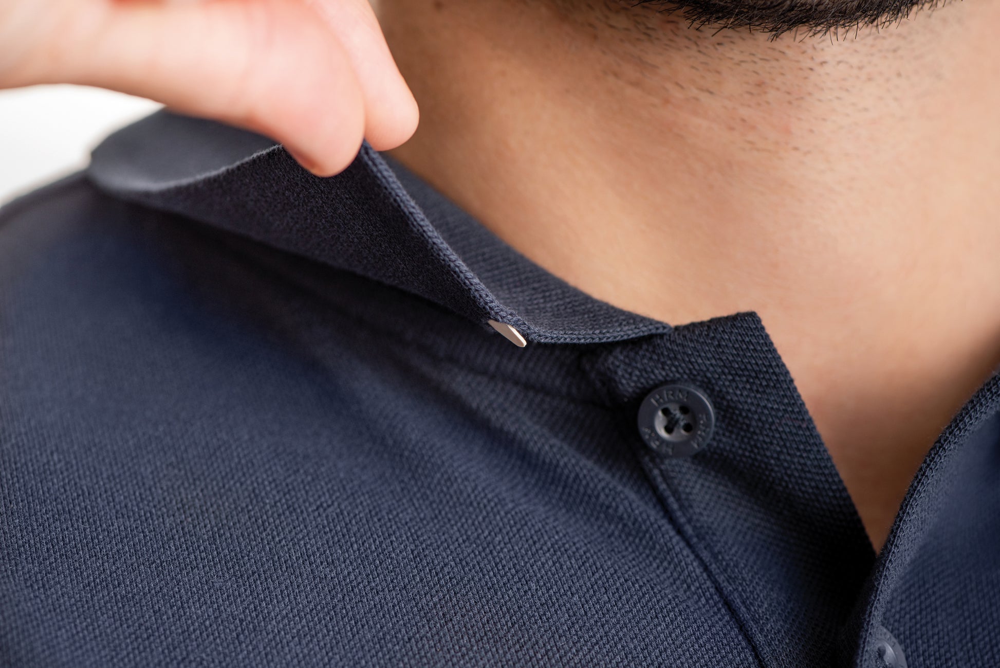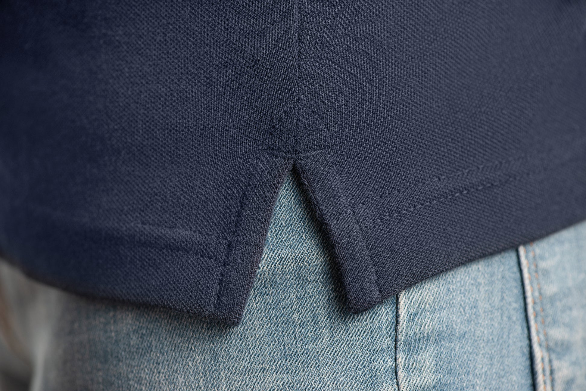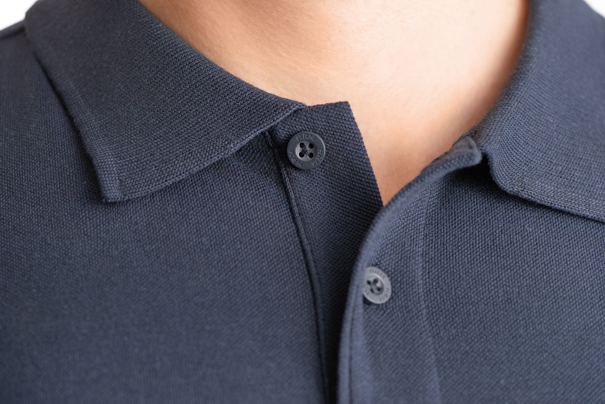 The innovative collar design, along with the neckband and side vents reinforced with twill tape, ensure durability. A 1x1 rib-knit collar and cuffs, and a 3-button placket with tonal HRM detail, underscore the high-quality workmanship.