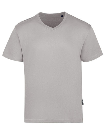 These men's luxury V-neck shirts made from ring-spun, combed organic cotton impress with a fashionable, fitted cut and comfortable single jersey fabric.