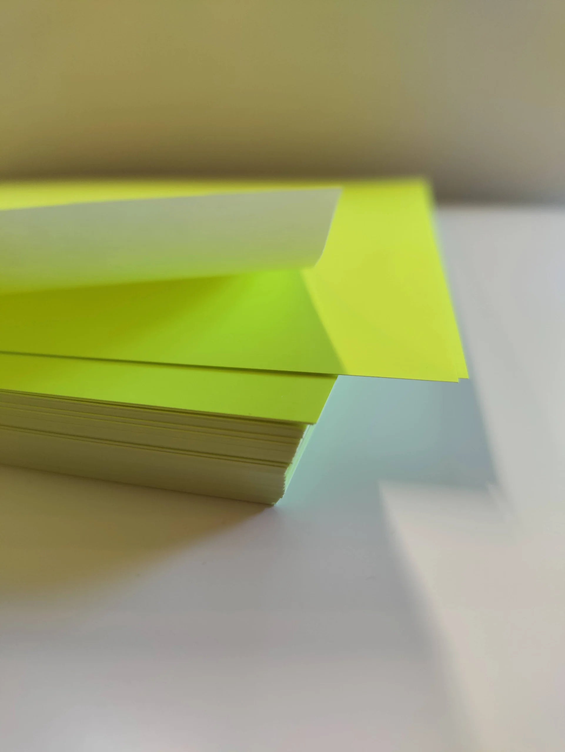 Clairefontaine Trophée-Neon paper, which you can find in our printing paper section, is double-sided neon-colored. This is a double-sided, solid-colored neon paper of the highest Clairefontaine quality. The color tones are not quite as extreme as the single-sided quality. It has a pleasant feel and high colorfastness.