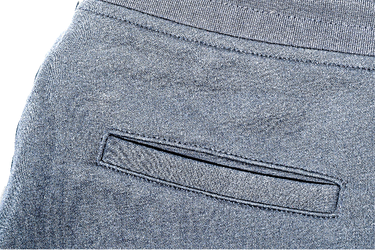Hem, pocket cuffs and leg waistband are finished with high-quality 1x1 rib knit