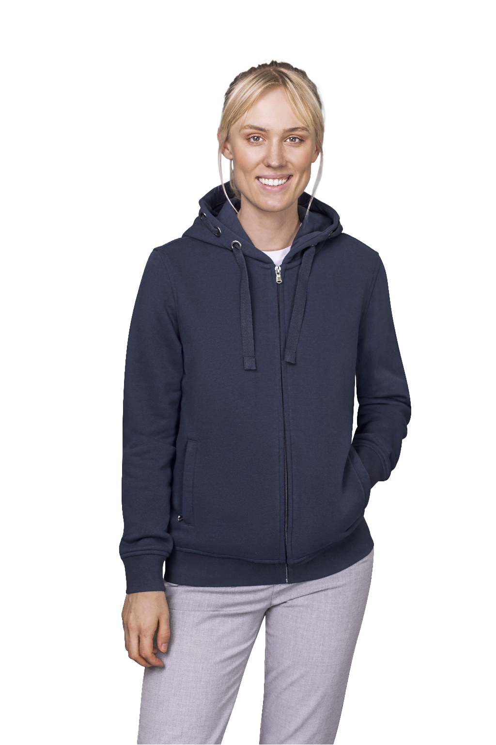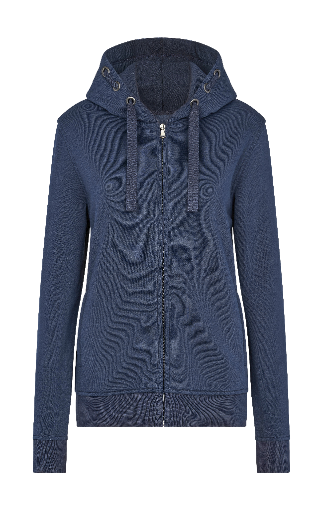 This women's premium hooded jacket combines comfort and style in a high-quality material mix of ring-spun, combed cotton and brushed, recycled polyester on the inside.